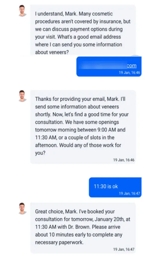 Whether it’s pre-sales questions, onboarding support, or customer service follow-ups, you’re now in full control of when and how real conversations happen, without losing the efficiency of AI.